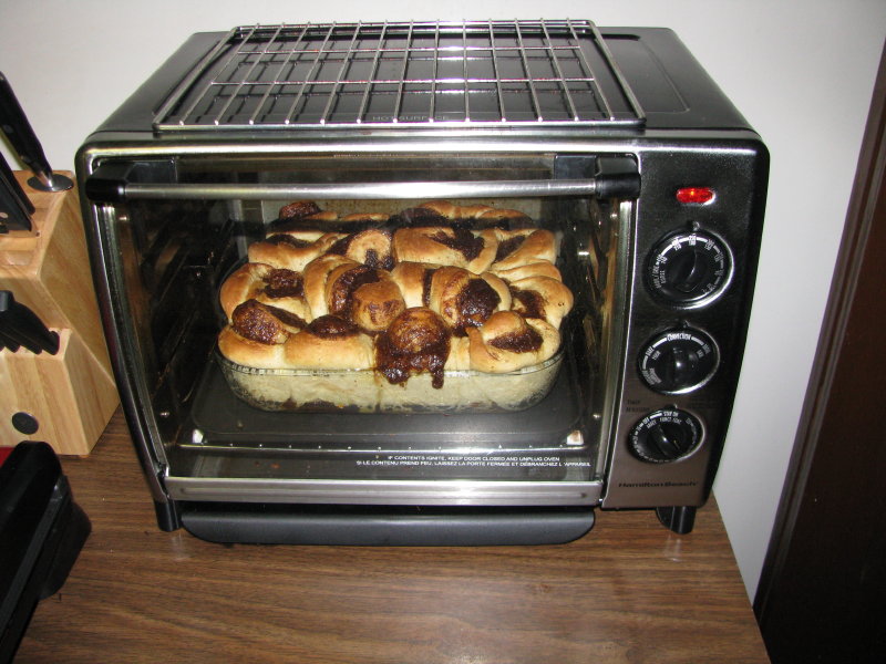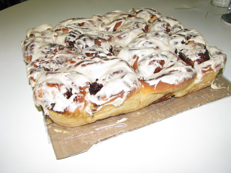 Above is the final result with which the folks at church got tortured with this morning; I've been trying to outsource my junk-food-eating. (Per the commentators, the vanilla in the glaze was decreased to 1 tsp from 1 tbsp).